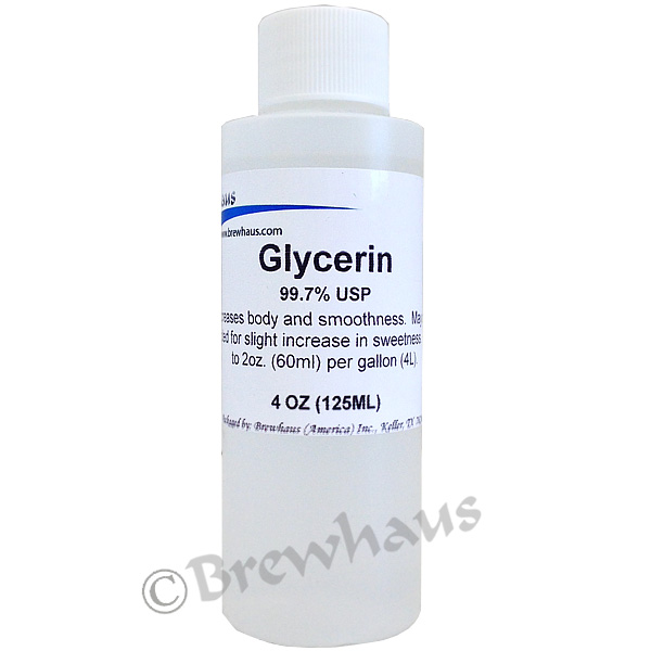 Glycerin is an organic product that is used for adding smoothness, body and slight thickness to liqueurs. It can also be used to slightly increase sweetness and take some of the "edge" off moonshine.