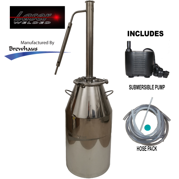 Intended for use as a moonshine still or for distilling essential oils, Brewhaus' Complete Essential Extractor Pot Distiller features solid stainless steel construction. We do not use utility pails or dairy milk cans for our kettles, which are not intended for welding or heating.